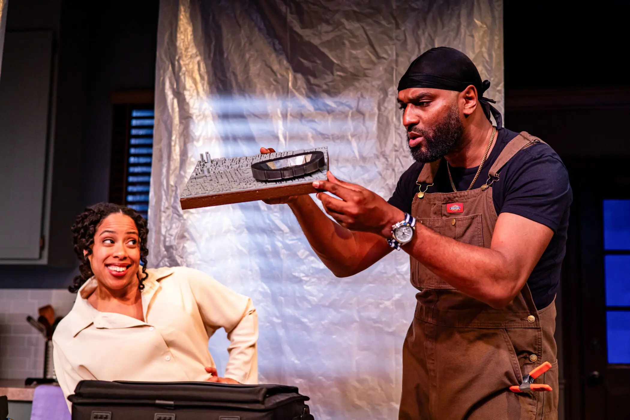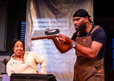 Taysha Marie Canales (Aisha) and Walter DeShields (Earl) in Arden Theatre Company’s 2026 production of GOOD BONES. Photo by Ashley Smith, Wide Eyed Studios.