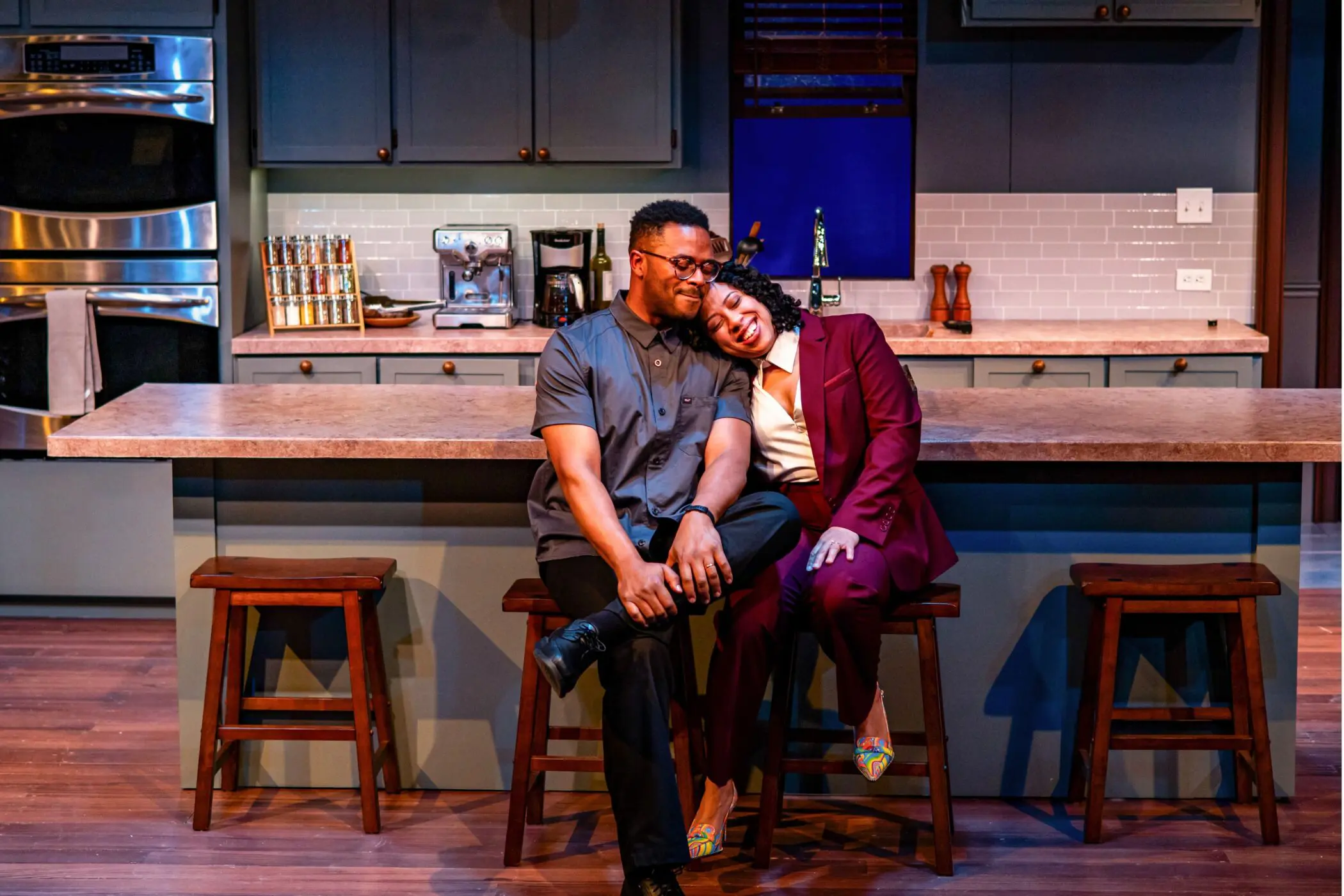 Newton Buchanan (Travis) and Taysha Marie Canales (Aisha) in Arden Theatre Company’s 2026 production of GOOD BONES. Photo by Ashley Smith, Wide Eyed Studios.