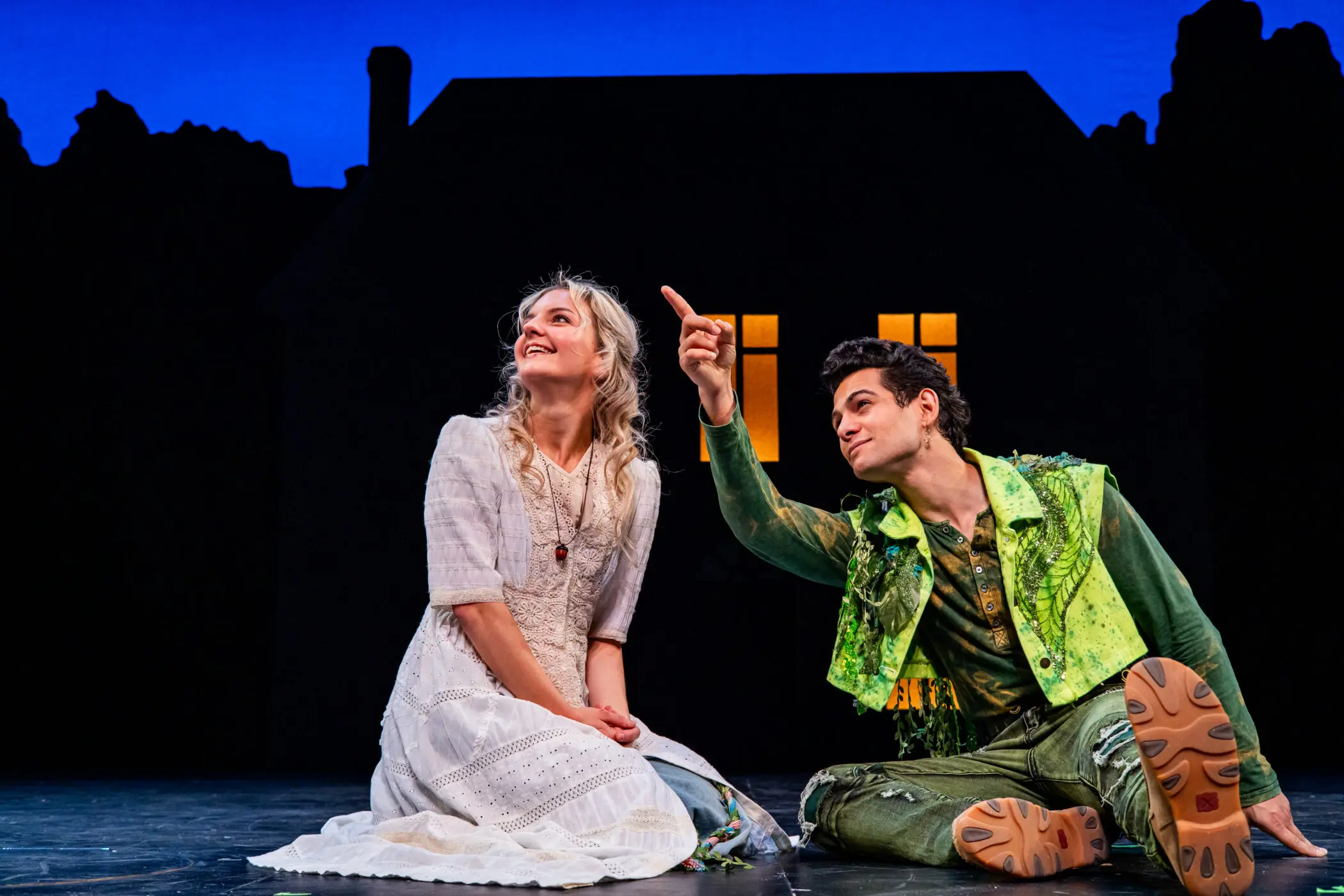 Campbell O’Hare (Wendy Darling) and Jo Vito Ramirez (Peter Pan) in Arden Theatre Company’s 2024/25 production of Peter Pan. Photo by Ashley Smith, Wide Eyed Studios.