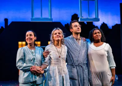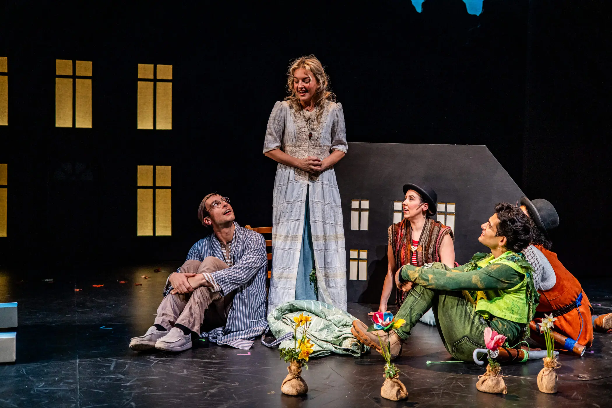 Lee Minora (Aunt Liza Darling), Campbell O’Hare (Wendy Darling), Adam Howard (Starkey), Adam Howard (Michael Darling), Jessica Money (Jane Darling) in Arden Theatre Company’s 2024/25 production of Peter Pan. Photo by Ashley Smith, Wide Eyed Studios.