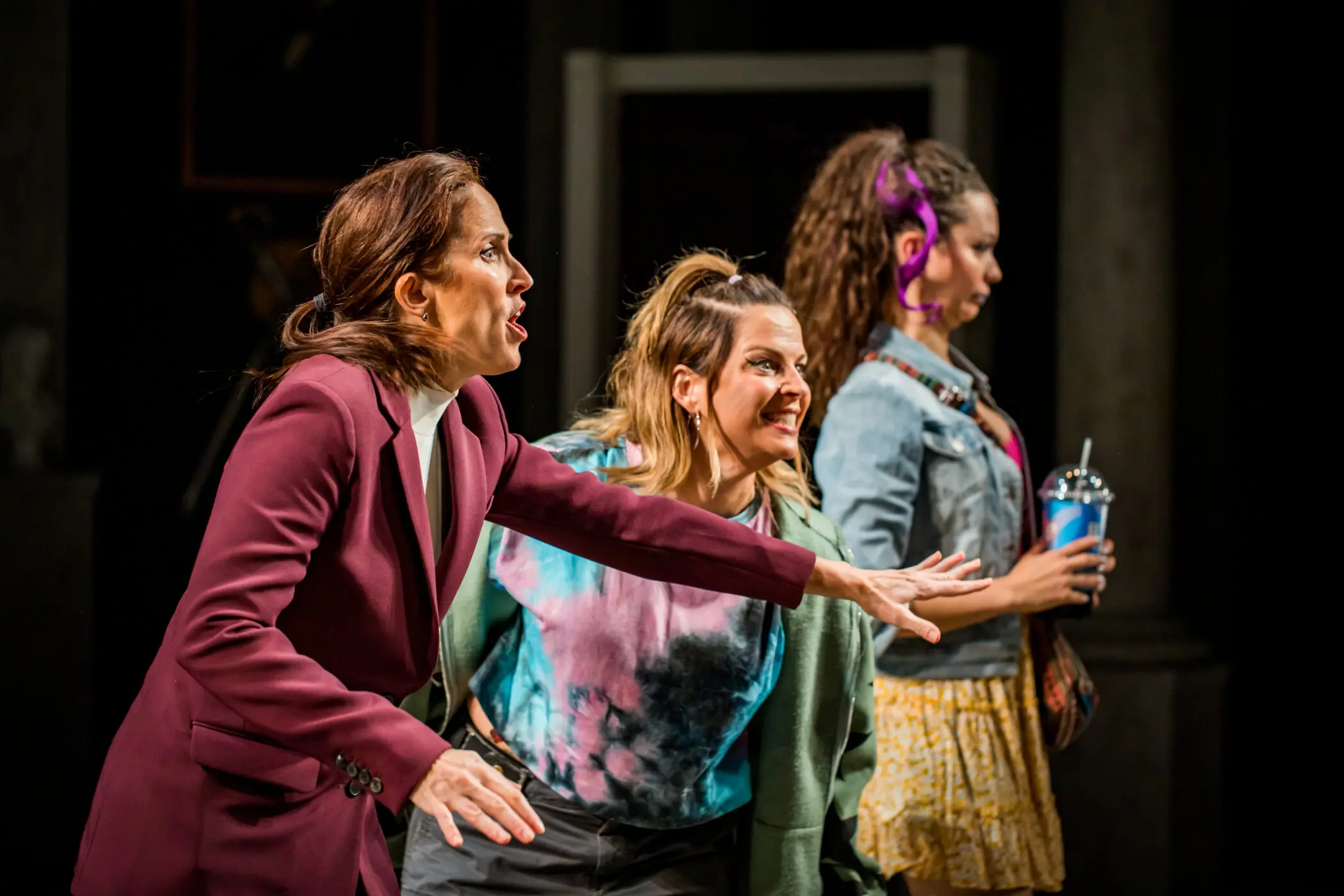 Karen Peakes (Jean), Kimberly Gilbert (Bernadette), and Alia Munsch (Dusty) in Arden Theatre Company’s 2024 production of POTUS: Or, Behind Every Great Dumbass are Seven Women Trying to Keep Him Alive. Photo By Ashley Smith, Wide Eyed Studios.